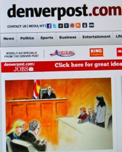 Aucune prise de vue n’était autorisée lors de cette seconde audition du tueur présumé. Même les organes de la presse locale, comme Denver Post, se sont contentés de croquis.