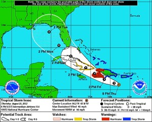 Aux Etats-Unis, la Convention des Républicains qui devra s’ouvrir lundi prochain, à Tampa au centre Ouest de la Floride, et se poursuivre jusqu’à jeudi 30 août, risque d’être houleuse. Non pas à cause de dissensions internes, de dissidences ou d’une quelconque agitation sociale aux alentours du stade Tampa Bay Times Forum, où devra se passer l’essentiel de cette grand messe destinée à officialiser la candidature de Mitt Romney à la présidentielle du 6 novembre prochain. Eh bien non ! Rien de tout cela ! C’est le temps qui vient jouer les trouble-fêtes. En effet, la tempête tropicale Isaac qui devra se transformer en ouragan d’ici demain vendredi et qui, en ce moment (jeudi en début d’après-midi) menace les Caraïbes, frappera sans doute la Floride, dès le lundi après-midi.
