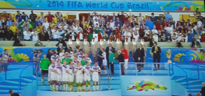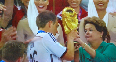 Reste que lors de la remise du trophée au capitaine de l’équipe allemande, il y a eu comme un quiproquo. On ne savait pas si l’honneur en revenait à la chancelière Angela Merkel ou à la présidente du Brésil Dilma Rousseff. Il y a eu comme un flottement protocolaire. Finalement, en jouant un peu des