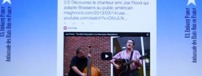 Même si nous attachons la plus grande importance à la qualité du travail, notre jeune site ne s’attendait pas à une telle « mise à la une ». Notre article sur le chanteur américain Joe Flood a été reblogué par l’ambassade des Etats-Unis à Paris (lien : https://twitter.com/USEmbassyFrance/status/527490341335601152). Rien que ça ! C’est d’autant plus gratifiant que MaghNord tient […]