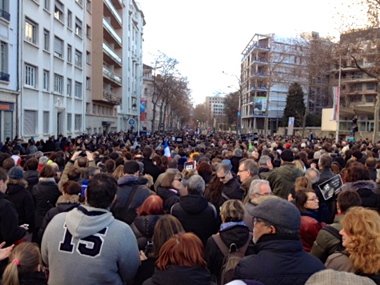 À Lyon, où 300 000 personnes ont participé à la marche républicaine, on nous signale un « cours Gambetta noire de monde ».