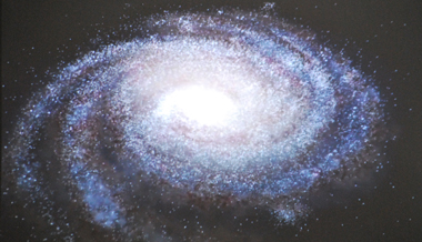« Vue de la terre, la galaxie est un disque assez mince. La nuit, quand on regarde le ciel, on voit la Voie lactée. Cette traînée d’étoiles, une densité importante, un peu blanchâtre, c’est ce qu’on appelle la Voie lactée. En fait, ce qu’on voit, c’est le disque (NDLR pas la spirale), la galaxie par la tranche. Quant au soleil, il se trouve un peu vers l’extérieur, pas complètement en dehors, mais, quand même sur le bord du disque ; on va dire plus près du bord que du centre et du coup quand on est sur le bord du disque et qu’on regarde vers le centre de celui-ci, on ne voit que quelque chose de plat comme une traînée. C’est ça la Voie lactée », ajoute Annie Robert.