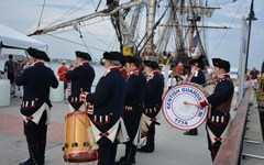 Au rythme du son patriotique américain l’Hermione fait face à Port Adams (vidéo Dahmane Soudani- L’Hermione à Newport. Vidéo Dahmane Soudani.