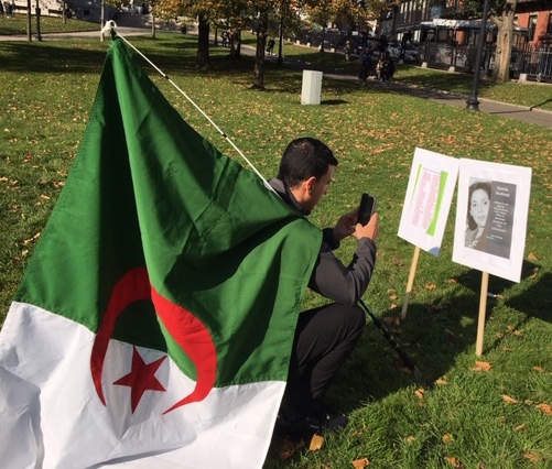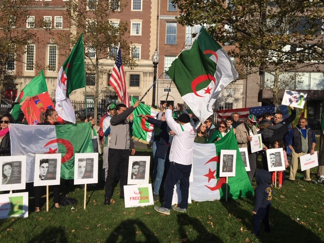Avant le début de ce rassemblement, les jeunes de l’Association des étudiants algéro-américains de la Nouvelle Angleterre -Algerian American students of New England-, à l’origine de cette manifestation, avaient planté, sur la prolifique pelouse du square, des affichettes frappées à l’effigie des héros de la Guerre le Libération nationale et une liste de certains détenus pour délit d’opinion ; liste qu’ils ont soigneusement accolée au portrait de Djamila Bouhired. « Vous avez volé notre identité, notre histoire, notre révolution, notre indépendance, nos ressources, notre passé et notre présent, mais nous ne vous laisserons jamais voler notre future », peut-on lire sur une autre pancarte.