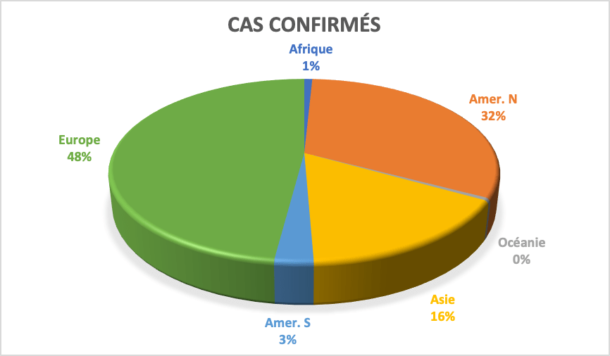 Covid 19. Répartition des cas confirmés par continent (infographie Dahmane SOUDANI)