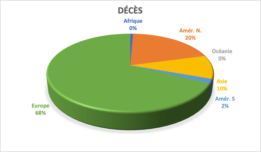 Covid-19. Répartition des décès par continent (infographie Dahmane SOUDANI)