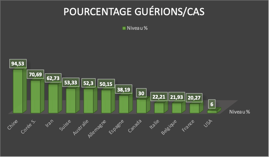 Aussi bien en nombre absolu de guérisons, qu’en termes de pourcentage guérisons/cas confirmés, l’Iran est dans les quatre premiers pays, voire dans le trio de tête. Pour procéder à cette comparaison, nous avons pris les douze pays qui, dans l’absolu, enregistrent le plus grand nombre de guérisons qui sont, globalement, les plus affectés par la crise sanitaire liée à la Covid-19. Les héritiers de la grande Perse réalisent cette prouesse alors même qu’ils sont l’objet d’un embargo, pour le moins, très contraignant. Inatteignable, la Chine, en véritable superpuissance sanitaire, survole le lot (infographies Dahmane SOUDANI).