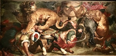 Dans ce décor pour le moins affligeant, le romantisme d’Eugène Delacroix, célébrant dans ses toiles, la chasse au lion en Afrique du Nord, a quelque chose d’abject et de consternant.