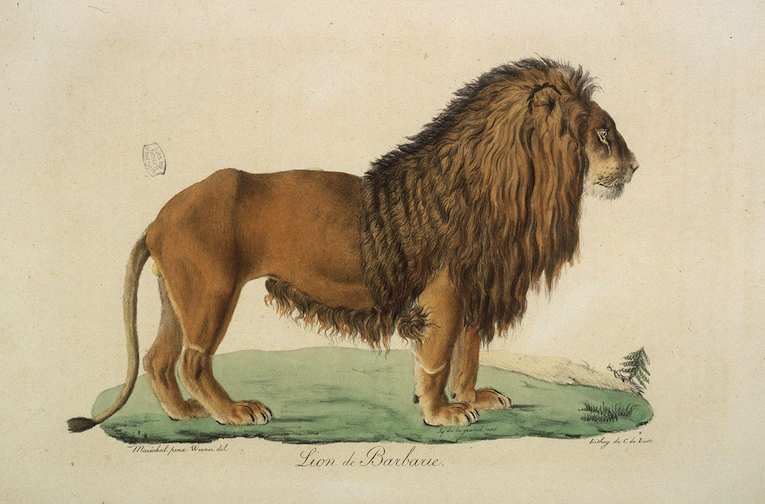 Lithographie reproduisant fidèlement le lion de l’Atlas