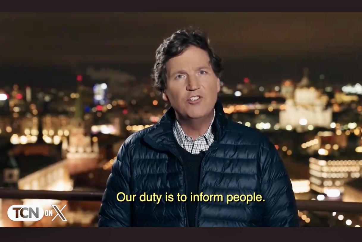 « Nous sommes à Moscou ce soir. Nous sommes ici pour interviewer le président russe Vladimir Poutine. Nous le ferons bientôt. Il y a évidemment des risques à mener une interview comme celle-ci. Nous y avons donc soigneusement réfléchi pendant plusieurs mois. Voici pourquoi nous la menons. », lance en guise d’introduction Tucker Carlson.