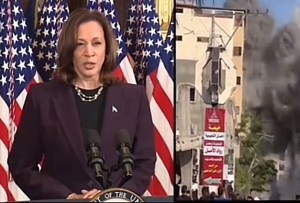 Comme pour contrer Netanyahou qui, la veille avait pris pour cible les étudiants américains et les autres manifestants qui protestent contre le génocide en cours à Gaza, les traitant d’« idiots utiles », soutenant des « meurtriers et les violeurs », la vice-présidente assène : « A tous ceux qui ont appelé à un cessez-le-feu et à tous ceux qui aspirent à la paix, je vous vois et je vous entends ».