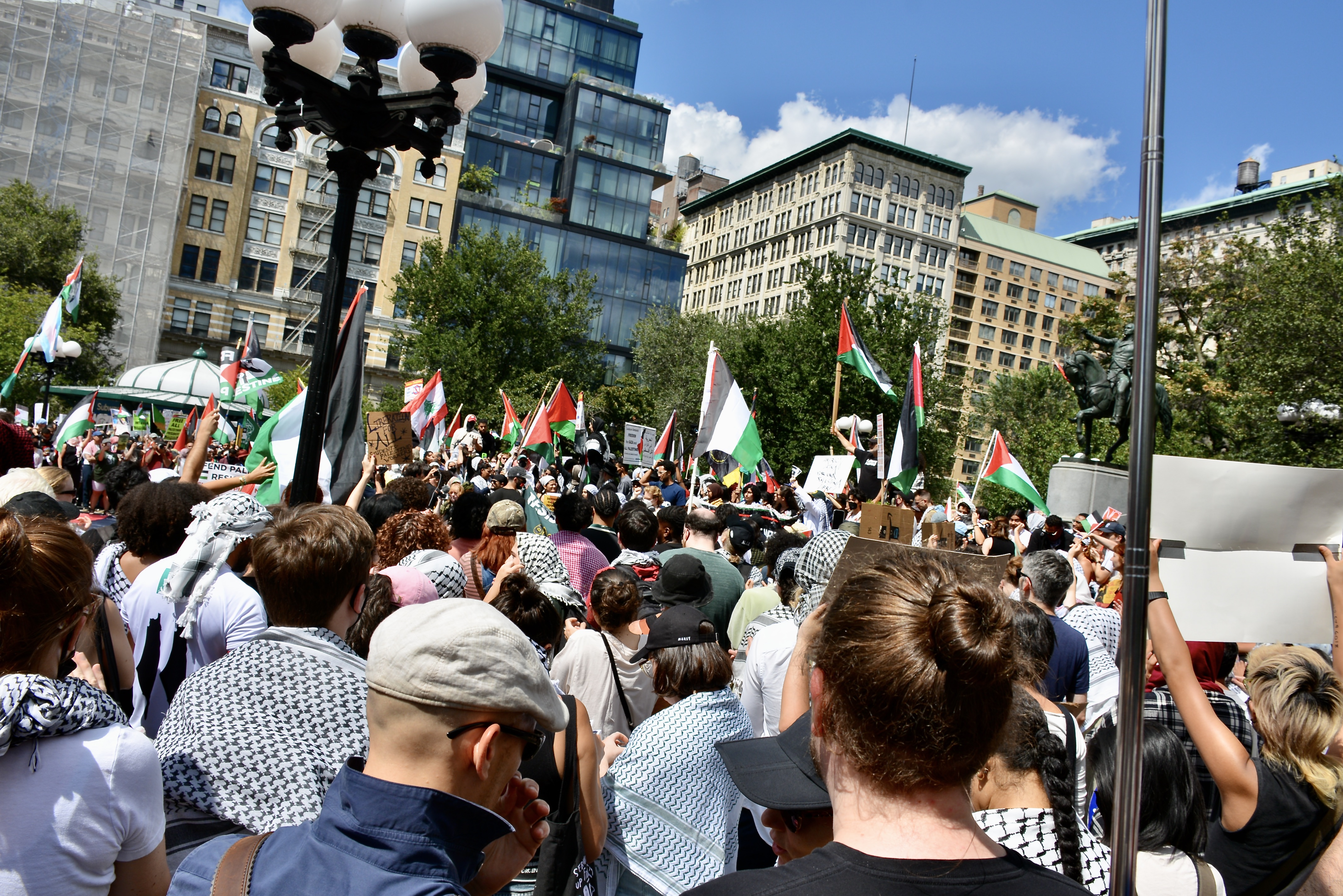 L’histoire retiendra qu’à New York, le Labor Day (fête du travail aux USA) 2024 fut dédié au combat pour la Palestine et contre le génocide en cours à Gaza. À bord du train Metro-North qui venait de New Haven dans le Connecticut, des groupes de jeunes avec des keffiehs palestiniens portés en écharpes ou autour de la taille annonçaient la couleur : une journée de grande mobilisation.