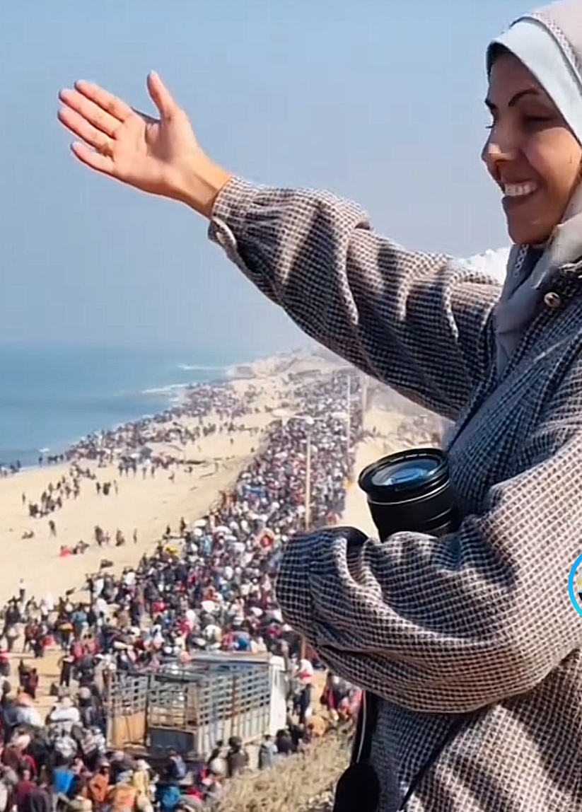 « Aujourd’hui nous voyons que nos proches à Gaza ont réussi à atteindre cet objectif, en dépit de tout ce qu’ils ont vécu. Depuis ce matin, j’essaie de réaliser ce qui se passe et ce n’est pas du tout évident. Ce qui se passe, là, sous nos yeux se, concrétise en dépit des plans de pays très puissants et d’armées aussi puissantes, il n’y a pas que l’armée israélienne, mais surtout tous ceux qui l’ont épaulée », poursuit la journaliste avant d’ajouter en s’efforçant de cacher sa révolte : « Pas plus tard qu’hier, on a appris d’un des chefs d’État les plus puissants au monde, des États-Unis pour ne pas les nommer, a évoqué, dans ses propres termes, l’exil forcé des Palestiniens de Gaza. Mais ce que nous voyons, aujourd’hui, est une réponse à Trump, à Smotrich, à Ben-Gvir, à Netanyahou et à tant d’autres qui soutenu cette guerre contre Gaza. Les Gazaouis ont été confrontés à la mort sous toutes les formes possibles et imaginables ; un million de fois par jour ils ont risqué leurs vies, et en dépit de cela, ils reviennent de cette manière-là, c’est … »