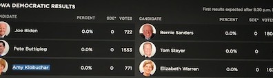 Bernie Sanders 26,5% des suffrages, Pete Buttigieg 23,7%, Amy Klobuchard 19,9%, Elisabeth Warren 9,5%, Joe Biden 8,5%, Tom Steyer 3,5%, Tulsi Gabbard 3,2%, après avoir gagné l’étape de l’Iowa, il y a une semaine, ce soir, à 22h (heure locale), Bernie Sanders est en tête du caucus -Parti démocrate- du New Hampshire réalisant ainsi un beau doublé. […]
